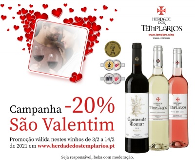 Tinto, branco ou rosé, este ano celebre o Dia de São Valentim em casa e aproveite até ao dia 14 de Fevereiro a promoção de 20% na nossa loja online nos vinhos Convento de Tomar tinto, Herdade dos Templários branco e Herdade dos Templários rosé! Um brinde ao amor 🍷 Promoção válida de 03/02/2021 a 14/02/2021.