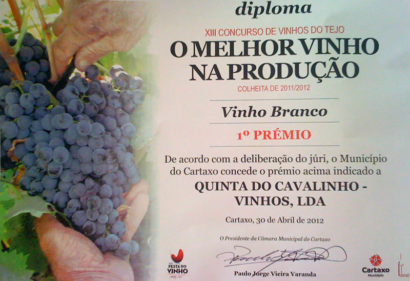 Vinho branco colheita 2011/12 ganha primeiro prémio "O melhor vinho na produção" do XII Concurso de Vinhos do Tejo!
