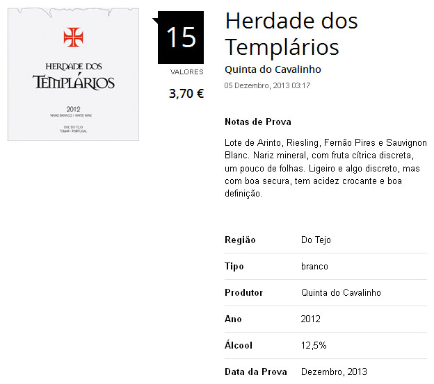• Vinho branco Herdade dos Templários - Revista de Vinhos